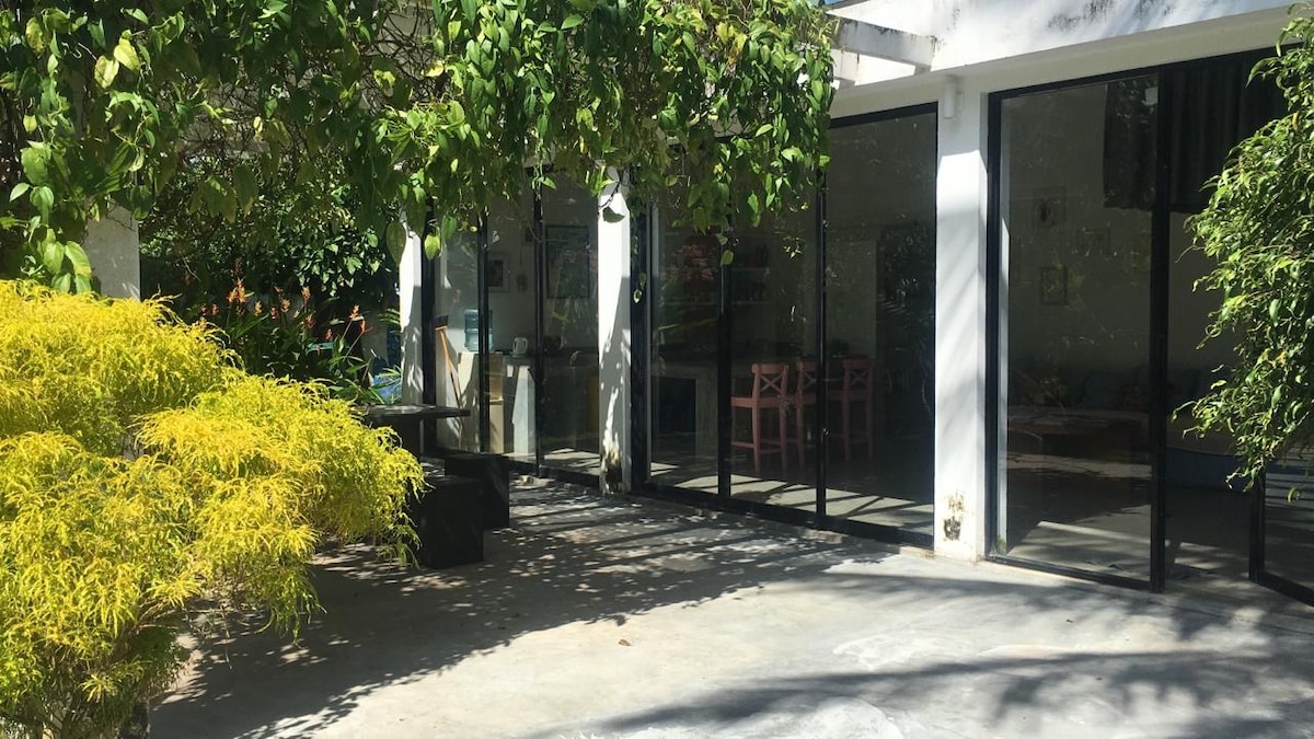 British owned house. Its 150 meters to Mirissa Beach! Very spacious house and nice private secure garden, close to bars and restaurants. Super quiet at night. Perfect for couples and families. House is very child friendly! Bedroom is fully air conditioned, There is mezzanine above the living room which sleeps 2 people, kids love the mezzanine which is accessible by stairs. kitchen equipped, Shower has hot water. House can accommodate 5 people comfortably. Its a paradise!