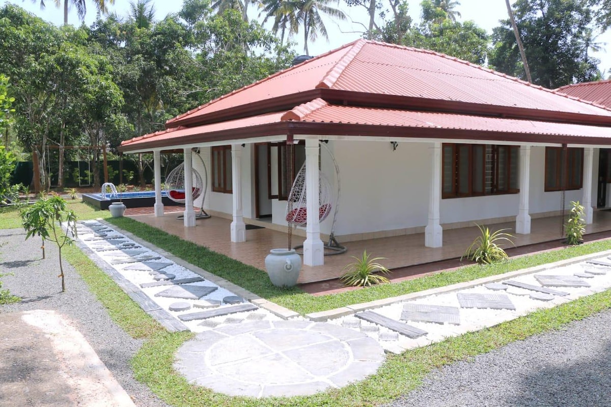Hi-Speed Fibre Internet for remote workers.....Luxurious home suitable for families with small kids boasting a large tropical garden enjoying country & sunrise views. 3 x Spacious Air Conditioned double bedrooms, a modern indoor kitchen, 2 x bathrooms, an outdoor shower, an open plan living area, and a terrace for Al Fresco dining. The garden is a paradise for nature and wildlife such as monkeys, chipmunks, peacocks and the occasional spider. We are approx 6-8 min walk from Mirissa Beach.
