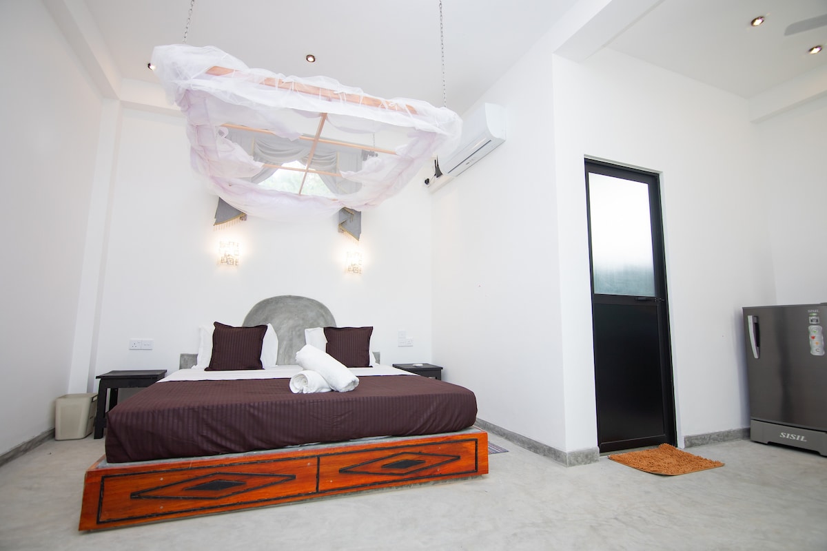 Muhuda is the 1st floor apartment in our Ananda Prana Wellness space. It features a fully air conditioned bedroom, with an attached bathroom. There is a hot water geyser in the shower as well. The living space is unique and open concept with curtains and nets to keep the bugs out. It has a fully equipped kitchen for private use, with an open concept living dining area. The property is shared with a beach resort so all the amenities of the resort are available at an added cost including the pool