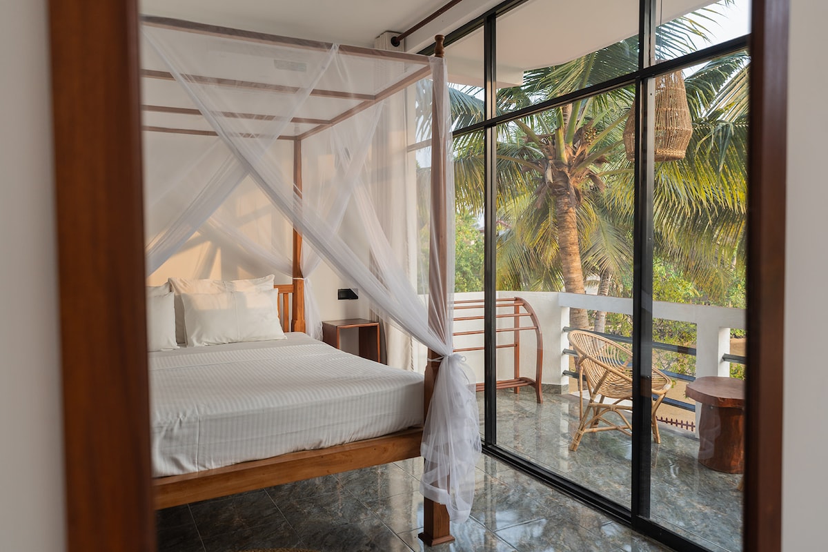 Wake up with the view over our beautiful lagoon. Private waterfront property with sun-drenched private sand beach. This tranquil escape offers king-sized beds, private balcony overlooking the water and a coworking space where guests get exclusive discounts. We just opened a little café with cozy living room vibe. Walking distance to the beach. The closest surf spot is a 5-minute walk away. Only 5 minutes by scooter to the center of the famous surfer town Ahangama.