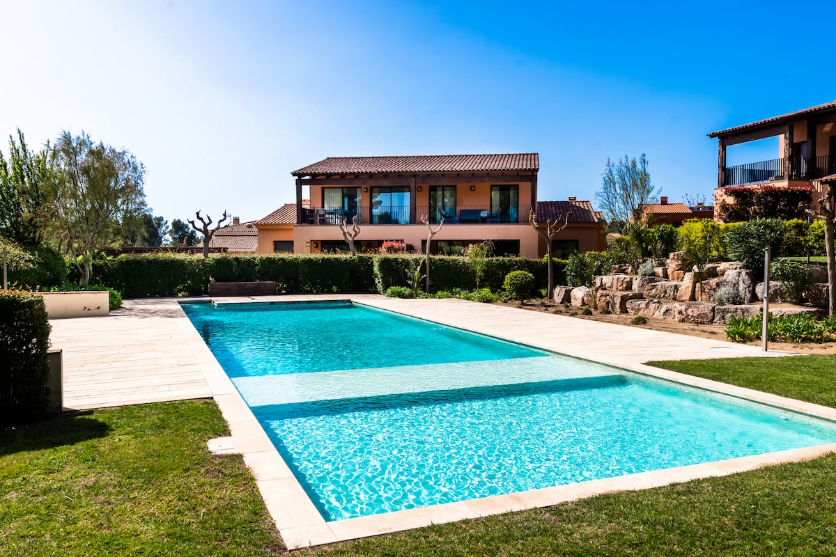 Rentigolf has chosen Birdie 8 for you, a beautiful house on the ground floor with terrace and garden. With a capacity of 4/5 people, the house has a large living-dining room, open kitchen, 2 bedrooms including 1 master bedroom with TV, storage cupboard and 2 bathrooms with bath and shower. Parking space in front of the house.