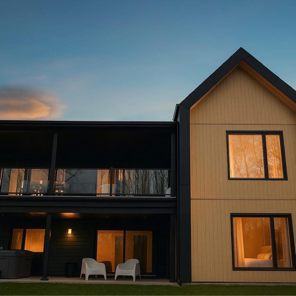 Escape to a new luxury waterfront chalet on the L’Assomption River. This 3,200 sq ft home offers stunning mountain views, an 8-person hot tub, and game room. Comfortably sleeping 9 guests, it's the perfect intimate retreat just 1 hour from Montreal and minutes from skiing. Enjoy superior quality, handcrafted details, and direct river access for an unforgettable stay.