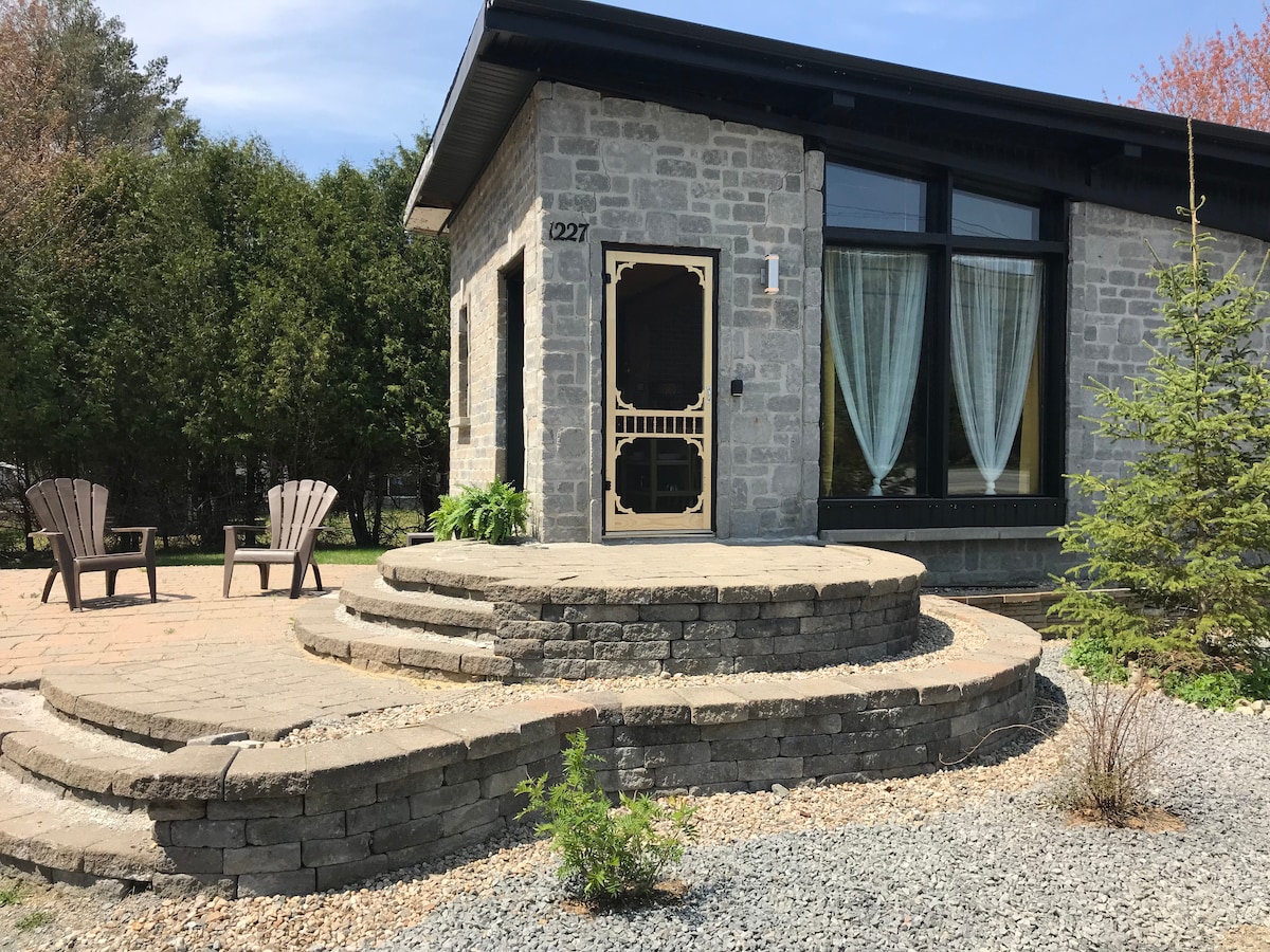 Chez nous, votre studio-loft offre une tranquillité assurée. Nous respectons votre intimité et vous êtes assurés d'être les seuls qui ont accès à vos espaces privés au sous-sol durant votre séjour. Votre salle de bain avec douche est privée. Accès à une terrasse extérieure avec vue sur la rivière. Quai en face pour kayak, canot, planche nautique. A proximité des sentiers de marche, à quelques minutes de la micro-brasserie Le trou du diable. Serrure numérique /code confidentiel.