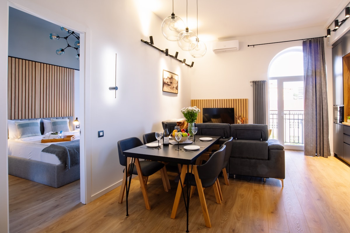 Enjoy stylish experience at this centrally-located one bedroom apartment,which sleeps 4 guests.Great location and conveniently accessible to everything you need for a long or short trip.Living room and dining area with a sofa bed,kitchen with appliances inc microwave and coffee machine,bedroom with double bed,bathroom and balcony. Your health is our priority.Our home follows an enhanced cleaning protocol,with a professional cleaning strategic disinfection. Enjoy your stay!