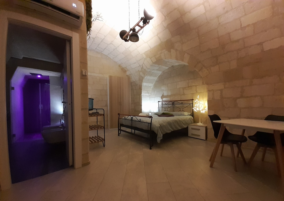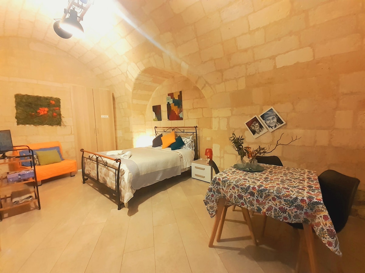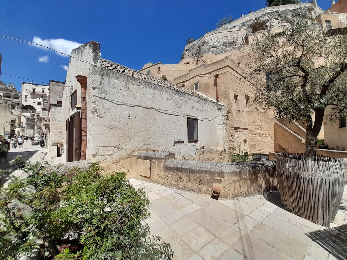 Charming cave dwelling w/relax area in the heart of the Sassi. You won't share anything with others because the apartment fits only one family/guest per time. It perfectly blends the magical feel of the old tufa caves with all modern comforts.The owners family has got an international background and fluently speaks English,French & Japanese