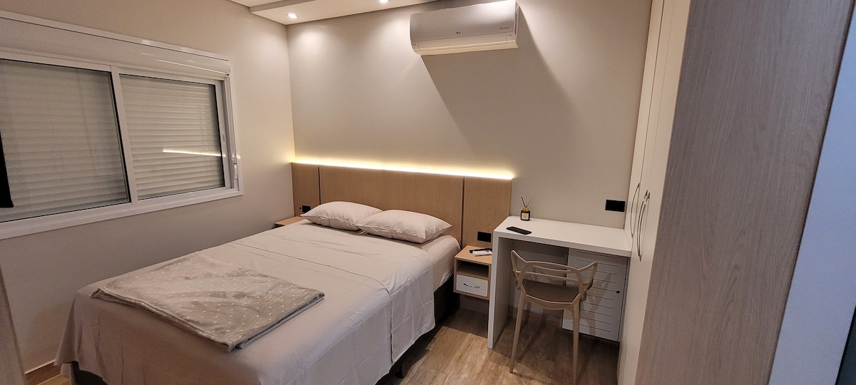 Sobrado amplo e espaçoso. Localizado a menos de 100 metros do mar, o sobrado é climatizado, com ar condicionado em todos os quartos. Dispõe de: 01 suite com cama de casal e solteiro; 02 quartos de casal; Cozinha completa e bem equipada; Área de churrasco; No balneário Praia Grande, próximo a bares, restaurantes renomados (La Bodeguita, Florida Sushi, Pilequinho, Sakura e Flórida Beach Bar), supermercados e comércios em geral.