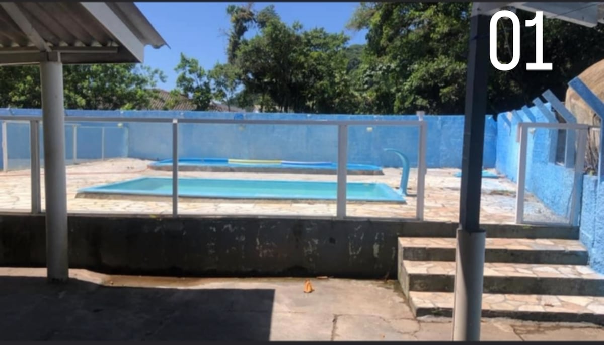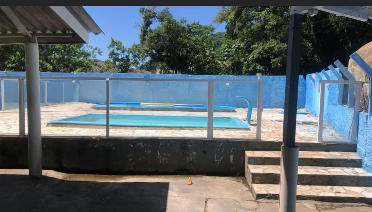 Reconecte-se à natureza neste lugar inesquecível. Próximo a praia, com varios animais, passeio cavalo, passe o dia na praia e durma com tranquilidade em uma fazenda, podendo pescar( peixe por kilo) comer uma galinha caipira, vendida limpa , carneiro, leitão, pavão, galinhas da angola, encostava na serra do Mar, , agua limpa descendo da serra, um Ambiente tranquilo, sem o agito da cidade, churrasqueira e fogão a lenha, 3 quartos com vários colchões, pronto p um ótimo final de semana!