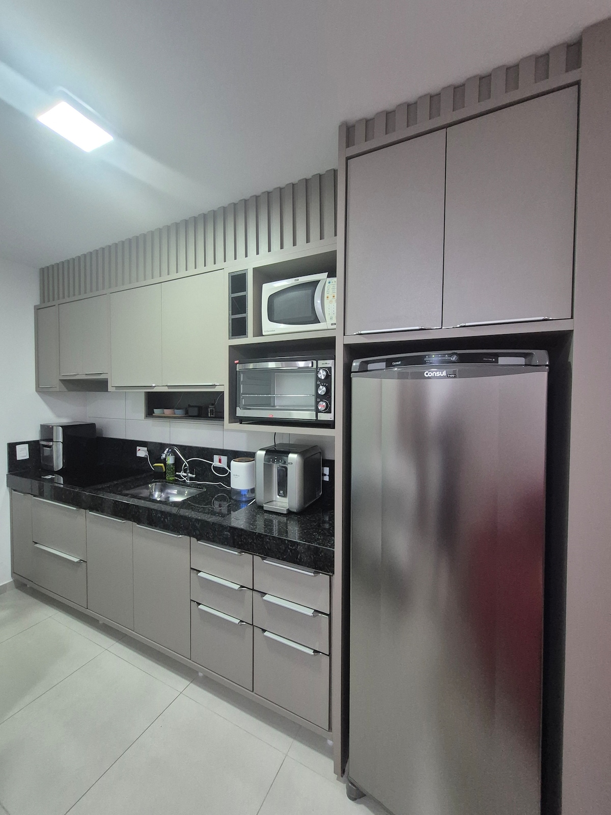 Casa Sobrado ampla sala de estar com TV 65 polegadas multicanais,internet Wi-Fi,sala jantar+cozinha americana com 02 geladeiras,cook top,micro ondas e utensílios usuais cozinha ,bancadas com cadeiras de apoio ,lava roupas 14 kilos,dispensa,andar superior 02 suítes + 02 qts,fds com a. Suíte com Tv smart Netflix etc Cond.varanda,armários,box em vidro.Piscina,edícula churrasqueira.segunda cozinha equipada .churrasqueira,solariam,garagem 03 carros.