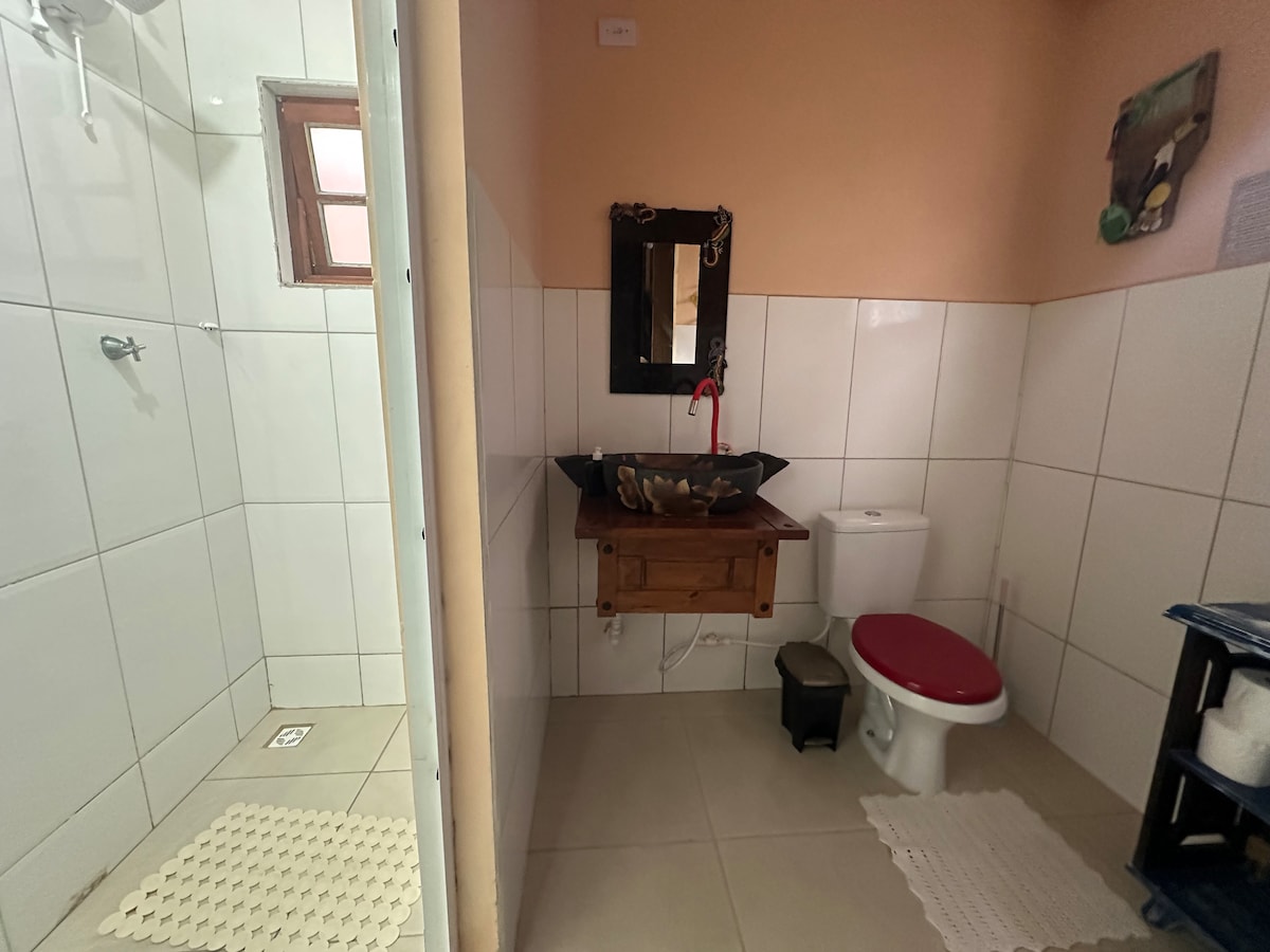 Insta: @daymartinsss - Contamos com um quintal de frente para mata, com 4 quartos , sendo 1 deles uma suite com banheira privativa. O quarto maior possui varanda com vista para piscina e para a mata. Wi-fi e TV. Piscina e banheira. A Calma e o aconchego de uma casa de praia. A casa nao fica localizada na quadra do mar, fica na de trás como no mapa.