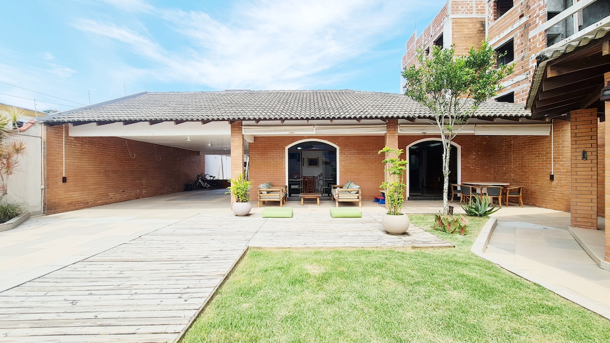 Sobrado beira-mar, piscina e espaço gourmet integrado. Para 12 pessoas. Garagem para 4 carros. No térreo: cozinha, sala de TV e jantar em conceito aberto, banheiro social e lavanderia nos fundos. Pavimento superior: duas suítes com closet e uma suíte master com banheira e vista para o mar. Terraço com amplo espaço e uma vista deslumbrante. Os quartos dispõe de camas de casal e dois colchões de solteiro cada. TRAZER TRAVESSEIROS, ROUPA DE CAMA E BANHO