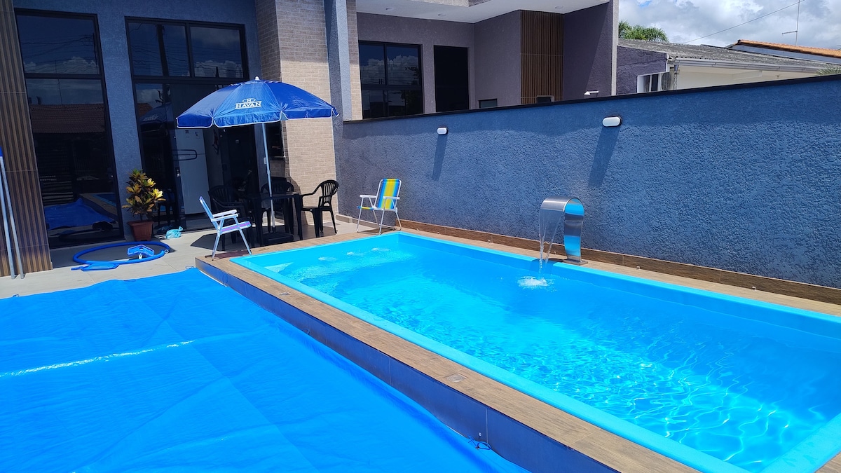 Casa super aconchegante com piscina, para que possa relaxar e se divertir com sua família. Imóvel contém 2 quartos com 2 camas novas e com ar condicionado, sala climatizada com ar condicionado, uma piscina de 6 metros para que possa estar usufruindo com sua família, Wi-Fi, churrasqueira, vaga de garagem para 1 carro (podendo deixar veículo na frente do imóvel sem problemas), em torno de uns 200 metros da praia!