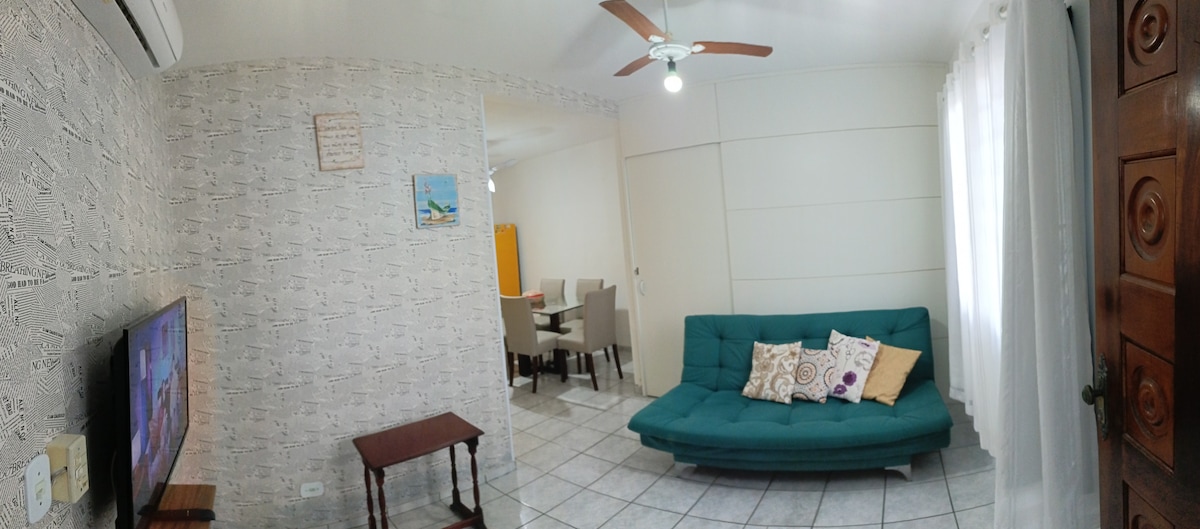 Apartamento térreo confortável e bem localizado a 300 metros da praia com dois quartos, um banheiro, garagem para um carro e espaço para churrasco, é a escolha perfeita para acomodar até seis pessoas que buscam uma estadia relaxante. Pensado para receber sua família com carinho, lazer e a tranquilidade. **Pacote mínimo de ano novo mínimo 7 dias!!
