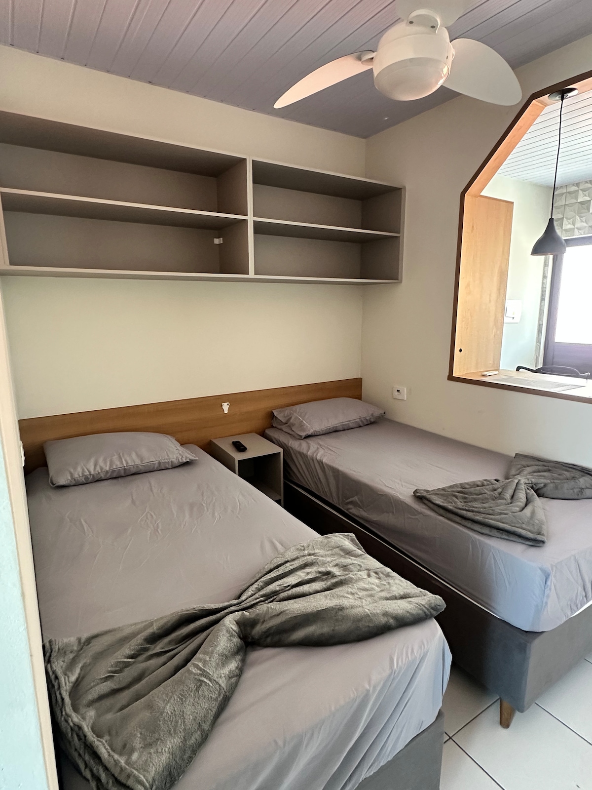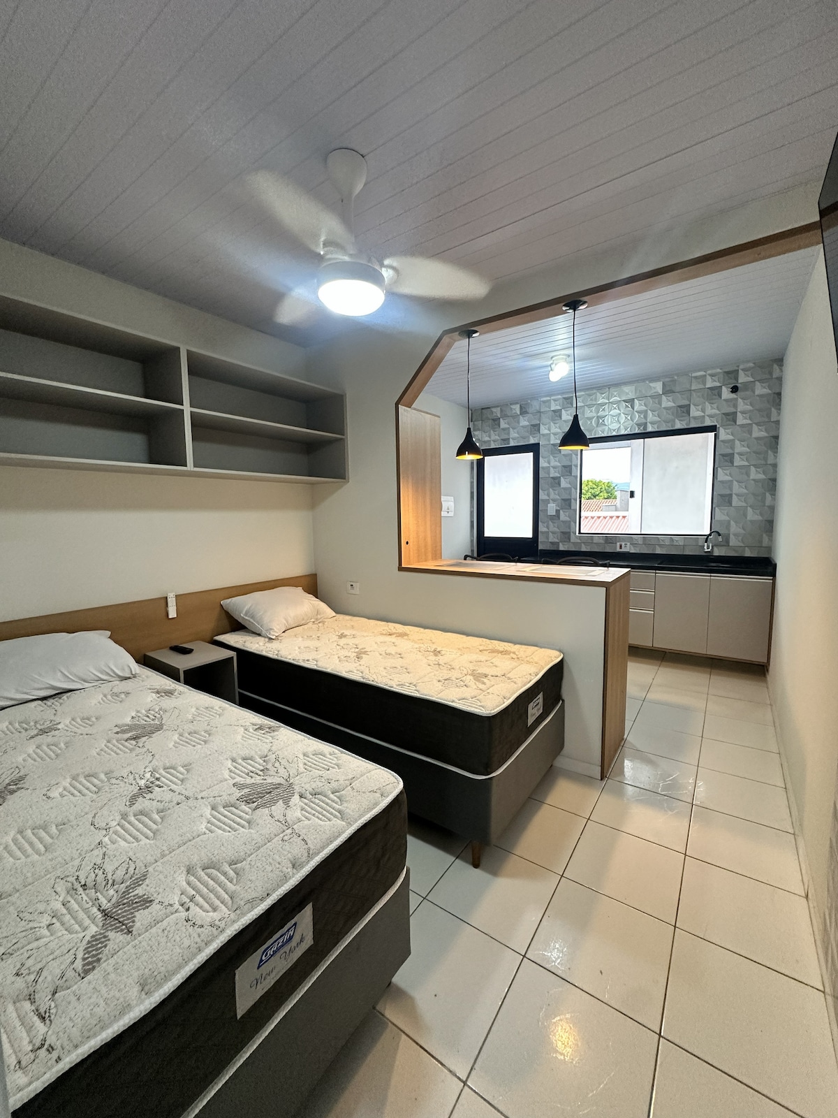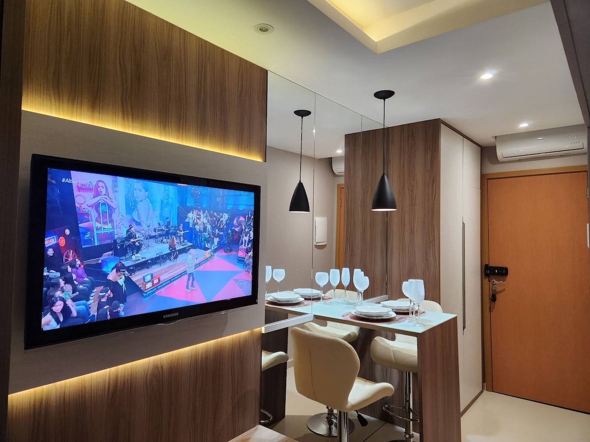 AP tipo Studio, ambiente pequeno e aconchegante com internet WiFi! Por ser no último andar, possui escadas! Até 7 pessoas. Valores adicionais a partir da 2ª até a 7ª pessoa. Condomínio possui: Piscina, Play ground, Cancha, Portaria, Churrasqueiras, salão de jogos; WiFi recreativo. É necessário exame médico para uso da piscina a partir de 01/12/2025, toda 2ª feira é fechada para limpeza! Fechadura digital com senha informada pela anfitriã. Não fornecemos roupas de cama e banho.
