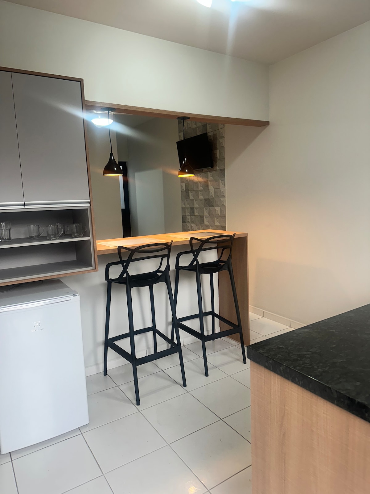 Come and enjoy comfortable and friendly accommodation on the seafront in Matinhos. Located on the seafront avenue, practically with your feet on the sand. This beautiful Studio offers: • Air conditioning; • Smart TV; • Minibar; • Microwave; • Electric cooktop; • Oven; • Electric Kettle; • Electric sandwich maker; • Blender; • Hairdryer; • Iron; • Guitar; • Kitchen utensils. We do not provide bath towels or bed linen, guests must bring them.