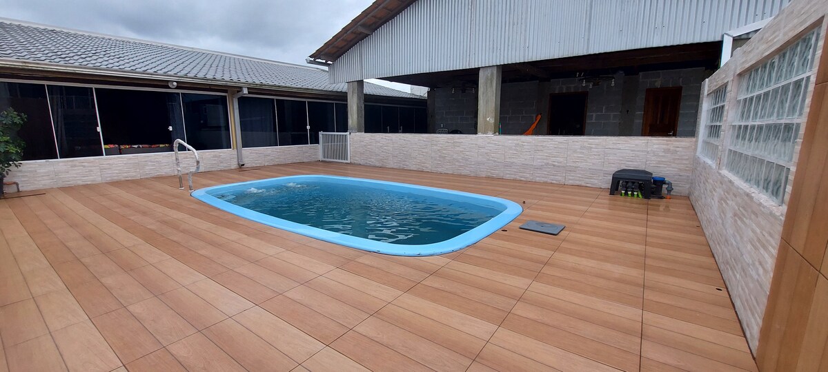 Lindo Sobrado novo Próximo ao centro da cidade de matinhos! O espaço ideal para suas férias. Amplo espaço contendo 4 suítes, todas equipadas com camas e colchão novos, todos os banheiros grandes com box e chuveiro! Uma área externa muito grande com piscina onde temos uma cascata e também hidromassagem, Um espaço com churrasqueira completa com freezer e louças, incluindo um banheiro com chuveiro! Garagem super espaçosa para até 5 automóveis Cozinha completa com sala Tv Smart e Wi-Fi 400 mega