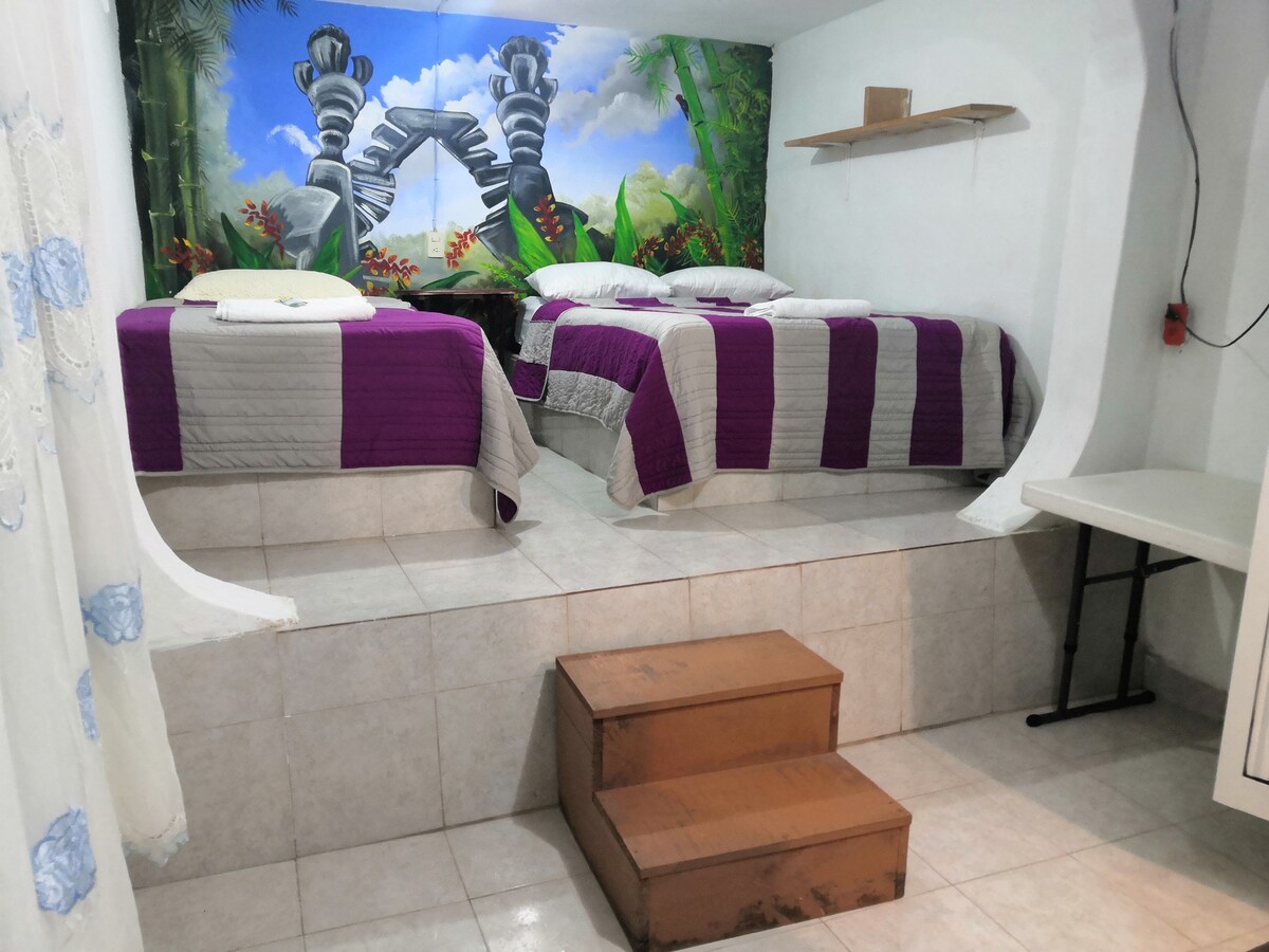 Posada ideal para grupos y familias, con 5 habitaciones de dos camas matrimoniales,cada habitación, Aire Acondicionado, Tv y Wifi las habitaciones están ubicadas en la parte de arriba de la propiedad ,tienen un espacio donde se encuentra un refrigerador, en la parte de abajo está un patio ,con asador y sala de estar, ubicado en el centro de Tamasopo, a 5 minutos del Puente de Dios y Las Cascadas de Tamasopo.