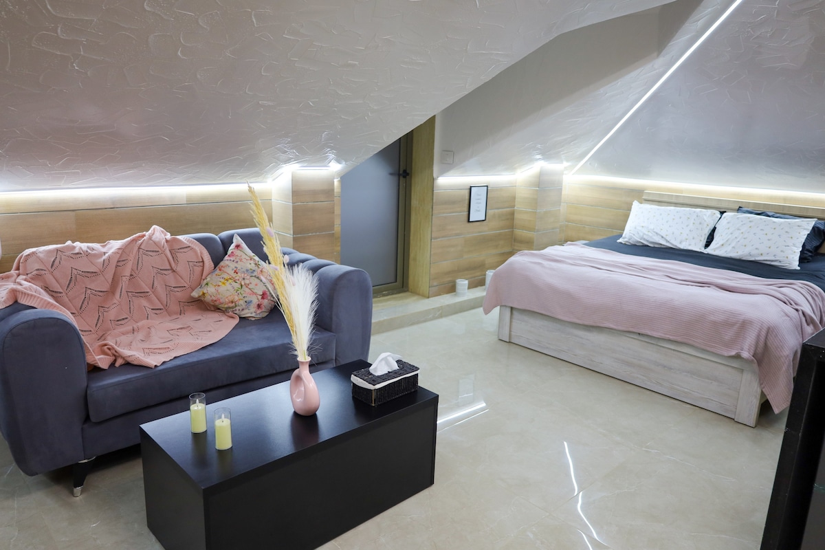 Charming private guesthouse in Aarbaniye, Lebanon, perfect for a serene getaway. Sleeps 3-4 guests: 1 double bed and 1 sofa bed Private outdoor area with a relaxing hot tub Just 40 km from vibrant Beirut, about a 45-minute drive Close to local attractions, blending tranquility with adventure Modern comforts in a cozy, authentic setting