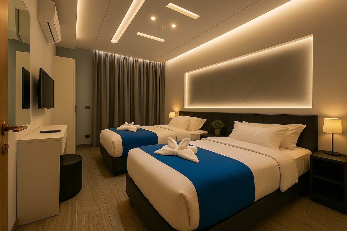 Our ApartHotel is conveniently situated in a highly accessible location. We cater to a diverse range of guests, including families, couples, students, and travelers, with a wide selection of apartments that are fully equipped. Our facilities include breakfast, an indoor gym, underground parking, 24/7 room service, and a 24/7 reception desk. All of our apartments feature balconies where smoking is permitted, and we also offer shuttle services to and from the airport for added convenience.
