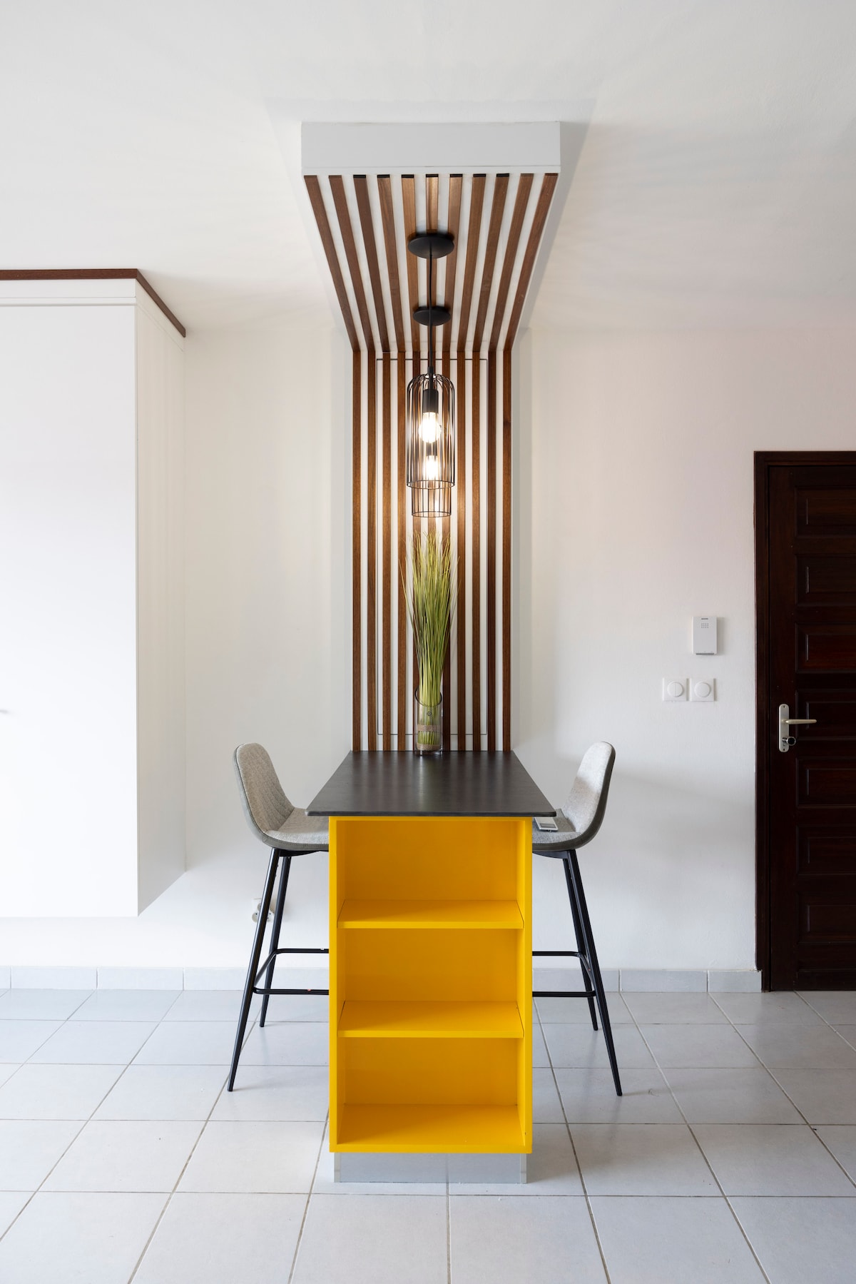 Charmant T2 au 2e étage d’une résidence moderne, idéal pour professionnels, couples ou petites familles. Calme et sans vis-à-vis, il offre une terrasse avec une table pour vos repas en extérieur, un espace bureau, un lit confortable et des équipements haut de gamme, dont une cave à vin. Alliant confort et raffinement, cet appartement est parfait pour se détendre. Situé à Cayenne, il vous garantit le calme de la périphérie tout en restant proche des commodités.