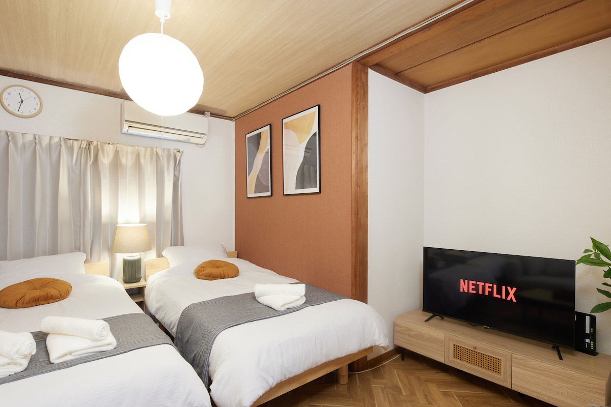 2025年4月开业! 从京成线「お花茶屋站」出发,只需悠闲地漫步穿过商店街,3分钟便可抵达我的民宿。这里是一间新建公寓内的独立房源,完美融入传统日本商店街的氛围,带给您特别的入住体验。 清晨,您可以在商店街的面包店品尝刚出炉的面包,喝上一杯现磨咖啡;夜晚,不妨体验一下老字号寿司店或荞麦面馆的正宗美味。这样的住宿,让您深度感受当地的生活气息,与旅游截然不同,尽情享受纯正的社区时光。 🚅 交通时间如下: 羽田、成田机场:60分钟 上野:18分钟 浅草:16分钟 晴空塔:17分钟 银座:35分钟 池袋:35分钟 新宿:44分钟 👥 若您与家人或朋友一同入住,可预订隔壁的另一间房,两间合住最多可达4人,详情欢迎咨询。 🏠 便利设施:步行 3 分钟内即可到达便利店、餐馆、超市、投币洗衣店、公园。而且,这里夜间环境宁静,非常适合休闲放松。 📺为了营造一个轻松休憩的环境,房内不配备电视。 📝 若您计划入住 30 天以上,请注意需签订定期借家合同。预订成功即视为合同签订完成。如需详细信息,欢迎随时咨询。 🏢 此间房源位于一栋无电梯的三楼,请确保您的入住便利性。
