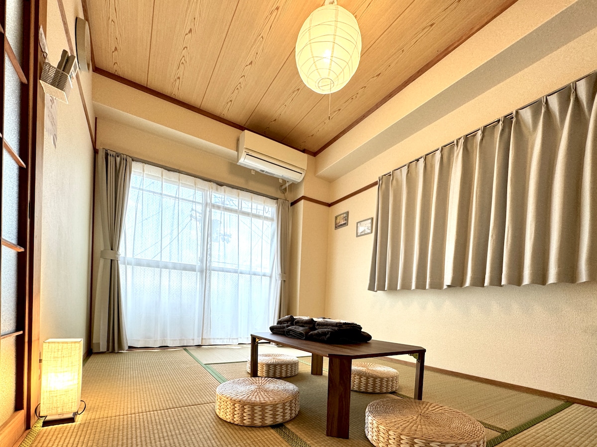 道後温泉徒歩8分|家族や友人に最適|畳でくつろぐ和室ステイ|キッチン付き和室で長期滞在歓迎