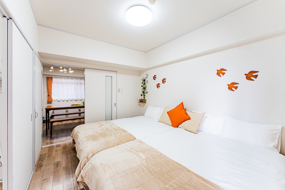 道后温泉站步行9分钟/整套最多可住6人/2张双人床&2张单人床/2DK 41㎡/松山市道后