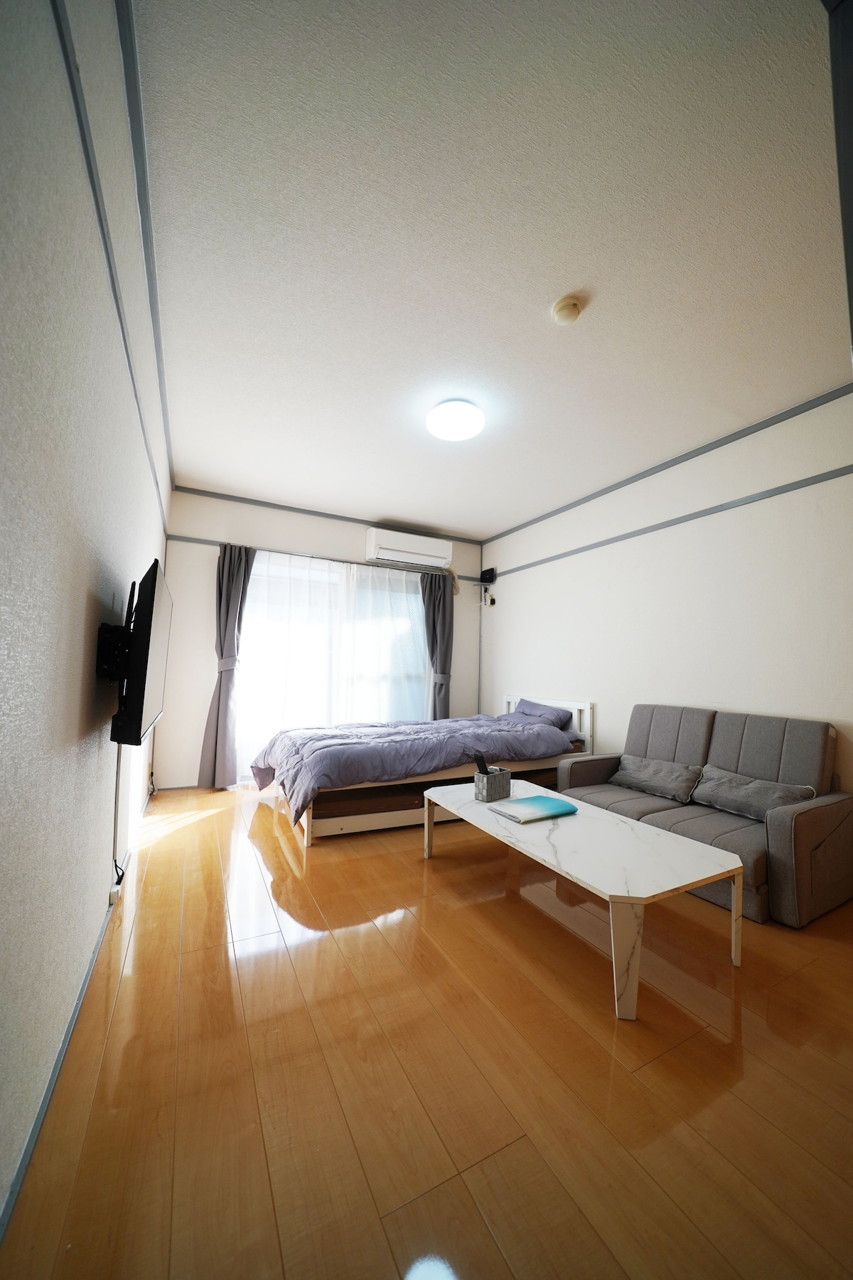 道後公園すぐそばの静かな6畳和室です。 コンパクトな空間ですが、日本らしさを感じられる“和”の雰囲気と、のんびりとした滞在時間をお楽しみいただけます。 ・最大4名様までご宿泊可能 敷布団はシングルサイズを3枚ご用意しており、横に並べると約300cm(ダブルベッド2台分以上)の広さになります。 掛け布団は4枚、枕も4つございますので、大人4名様でもご利用いただけます。 ご家族での“川の字”スタイルや、ご友人同士での思い出作りに、日本ならではの布団体験をお楽しみください。 ・ローテーブルと座布団で、くつろぎながらの団らんに最適 ・徒歩すぐの「道後公園」での朝の散歩や夕方のひと休みにぴったり ・道後温泉本館や商店街へもアクセス良好 ・新品のキッチン付きで、簡単な自炊も可能 ・徒歩5分圏内にスーパーマーケットとコンビニがあり、買い物にも便利です ・Wi-Fi完備でリモートワークや長期滞在にも対応 ・観光だけでなく、"日本の暮らし"を感じられるシンプルで落ち着いた滞在をご提供します