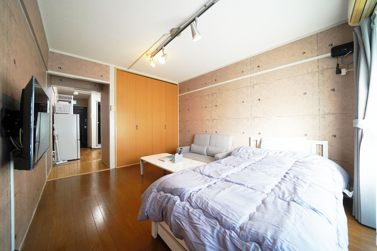 松山大街道步行3分钟|1K公寓23㎡|配备双人床+单人床,最多可住3人|适合观光购物的理想选择!