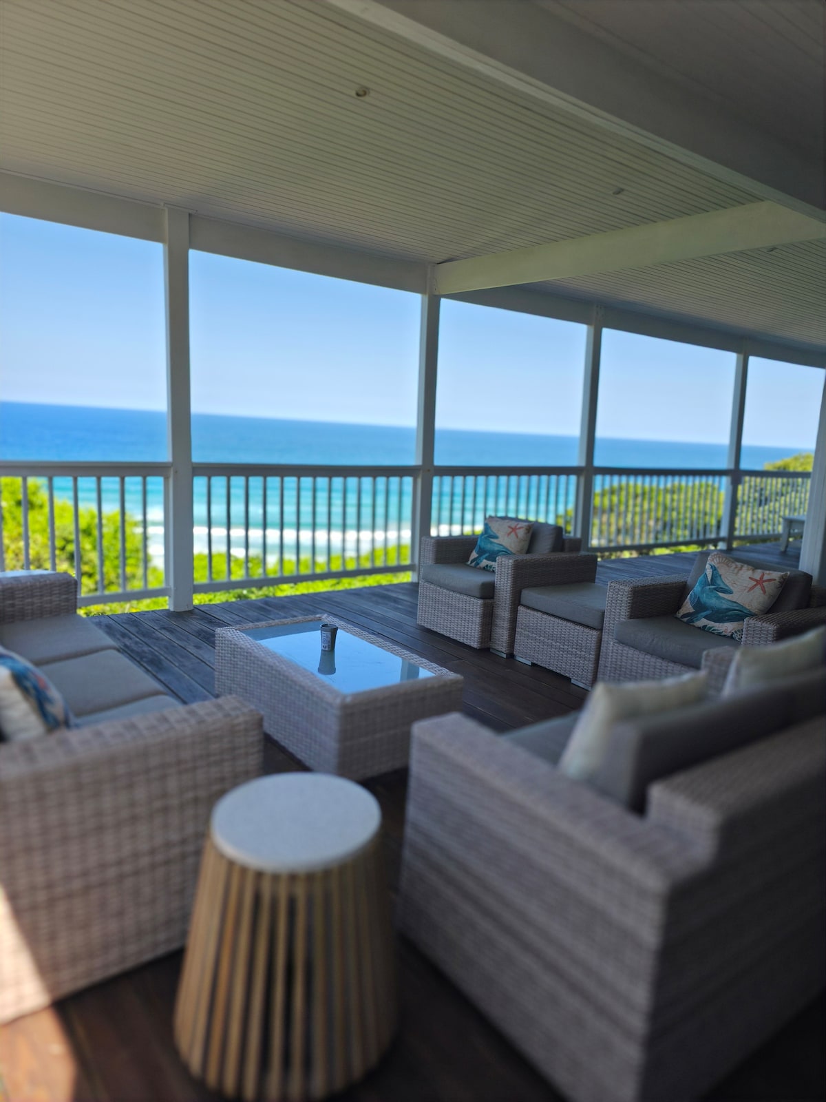 The double-storey home sleeps 8 - 10 people in 4 bedrooms. 2 and 1/2 bathrooms. An open-plan fully equipped self-catering kitchen and living area, which opens to sea-facing decks with outdoor furniture and braai facilities.