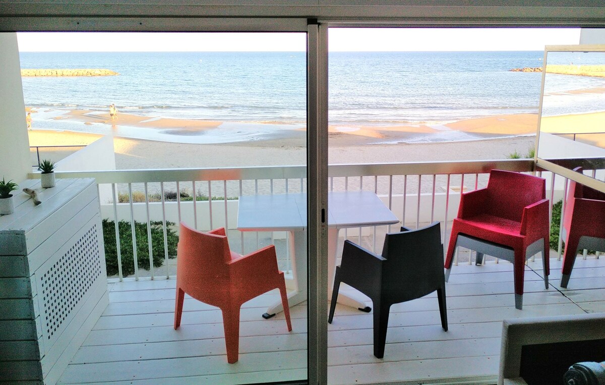 ‣ This family apartment is UNIQUE in particular with its SEA VIEW. ‣ Located IN THE QUIET, a few minutes walk from the BEACH of Les Roquilles (Carnon). ‣ Free parking *The accommodation* ‣ 2 bedrooms with dressings, beds 160 and 2x90 ‣ MODERN kitchen, induction hob, DISHWASHER, large fridge, nespresso coffee maker, kettle ‣ LINEN WASHER ‣ SPACIOUS and LUMINOUS living space for you to rest at your best. ‣ WIFI broadband ‣ Bathroom with bath ‣ 3rd floor (no elevator)