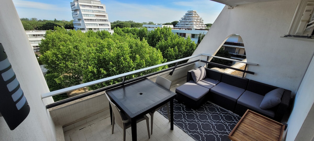 ‣ This family apartment is UNIQUE in particular with its SEA VIEW. ‣ Located IN THE QUIET, a few minutes walk from the BEACH of Les Roquilles (Carnon). ‣ Free parking *The accommodation* ‣ 2 bedrooms with dressings, beds 160 and 2x90 ‣ MODERN kitchen, induction hob, DISHWASHER, large fridge, nespresso coffee maker, kettle ‣ LINEN WASHER ‣ SPACIOUS and LUMINOUS living space for you to rest at your best. ‣ WIFI broadband ‣ Bathroom with bath ‣ 3rd floor (no elevator)