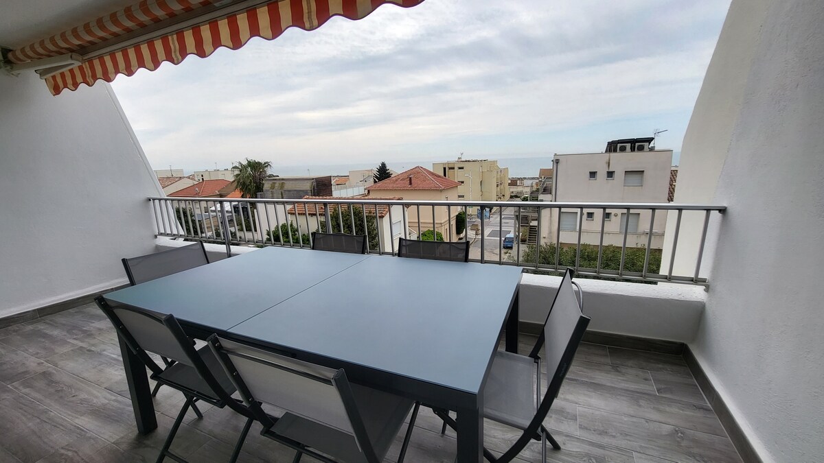 Une vue magique sur la Mer et la plage depuis un appartement type F3 au 1 er étage d'une résidence de 4 appartements, d'un grand confort, lumineux, climatisation réversible dans chaque pièce, baies vitrées encastrables. Belle terrasse, tables, chaises. Une place privée pour le Parking Accès direct à la plage par un escalier donnant sur la plage des Roquilles. Situé entre Carnon et Palavas les Flots, la plage de Carnon Ouest ou des Roquilles à droite (à la limite de Palavas)