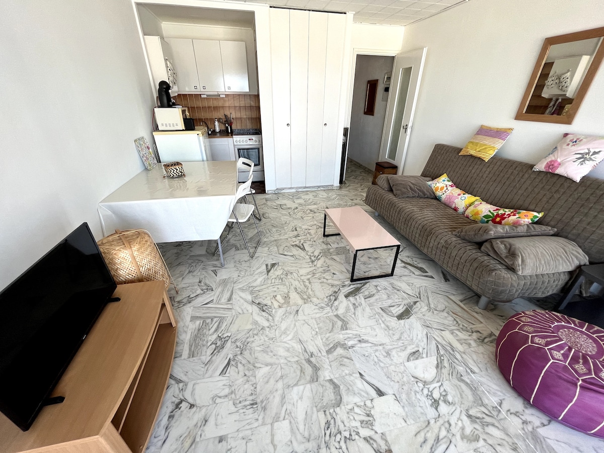 Superbe T2 situé au 2ème étage rénové intégralement avec place de parking privative. Profitez de sa modernité dans un cadre chill, avec une chambre lumineuse, un salon/cuisine accueillant avec une grande baie vitrée donnant accès à une terrasse très cosy et sa vue verdoyante. L'appartement est à 5 min à pied de la plage , ainsi que d'une corniche en bord de mer animée bordée de restaurants, bars et d’un casino ( jeux) Une zone commerciale se trouve juste à côté avec boulangerie, supermarchés