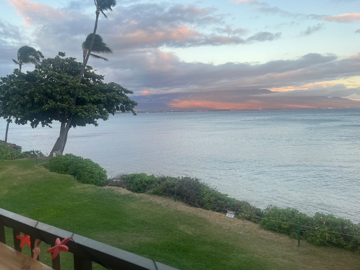 This rare ocean-front condo (LEGAL vacation Rental) is stunning! We call it a "Cruise ship view" cause you can't get any closer to the water than this! Listen to the sound of the ocean from the comfort of your home, while watching whales (Dec-April) and Hawaiian Green Sea Turtles frolicking all year long! Fully stocked, has A/C in living room and bedroom. Located a five minute walk from boats, Maui Ocean Center Aquarium, shops and restaurants at Ma'alaea Harbor!
