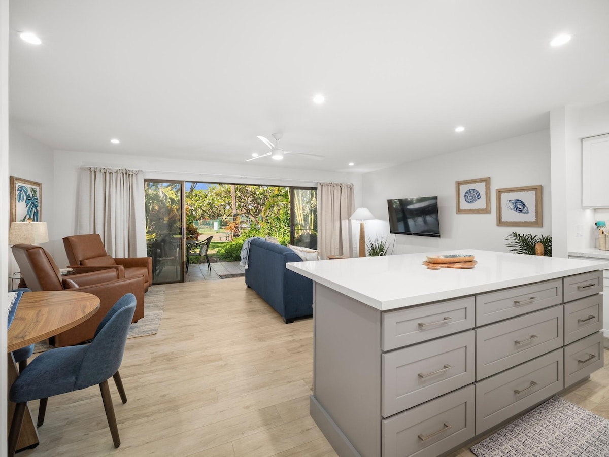 Experience a tropical retreat in our newly renovated studio condo, infused with Hawaiian flair and located in a peaceful part of the complex. Just across the street from a sandy beach and ancient Hawaiian fishpond, it’s perfect for turtle spotting and enjoying stunning sunsets. Guests can relax with amenities such as a pool, hot tub, BBQ, and tennis court.