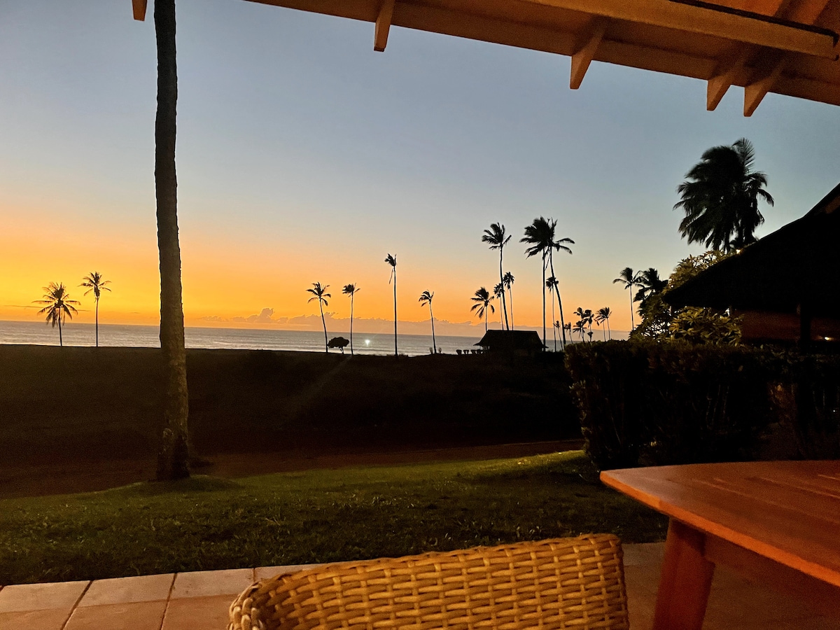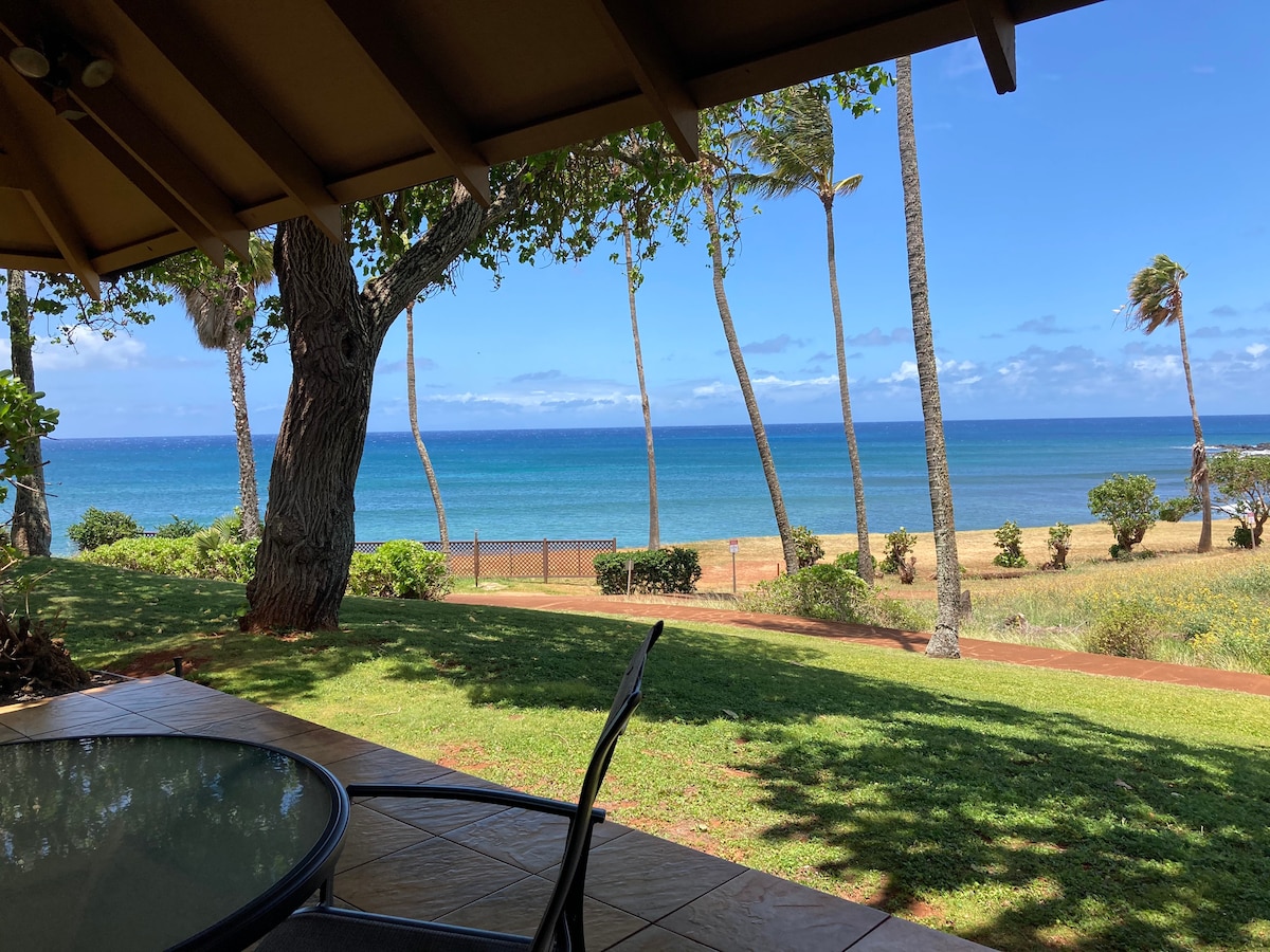 Relax & enjoy stunning ocean & sunset views, Kepuhi Beach, and Kaiaka Rock from this private two-bedroom, two-bathroom, two-story oceanfront cottage with a large covered lanai. This no-smoking cottage is located at the Kepuhi Beach Resort, close to pristine beaches, trails, and an oceanfront pool. The cottage is a peaceful place to work online, explore, or unplug & relax. You will enjoy blue ocean & beach views, colorful sunsets, breezes, tropical birds, waves, and whales in the winter.