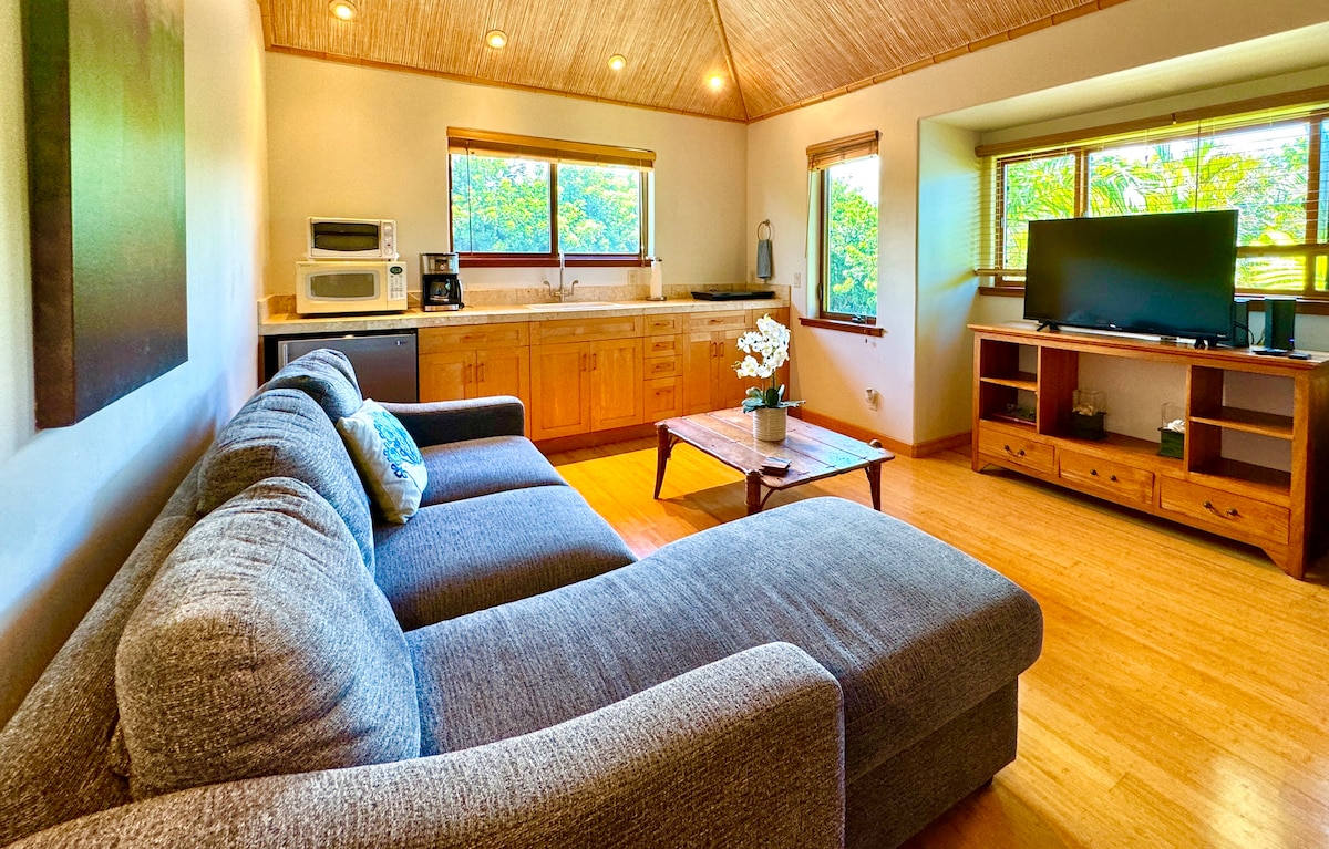 BBKM 2022/0002 licensed. South Maui Gardens is just a short block away! A fun location. This is a cozy charming private suite with a king bed, private entrance and private patio. Approx. 1 block to the beach and park. Walk to many great eateries, pubs, food trucks and shopping. Cove Beach is a short walk with some of the finest SUP and Surf activities available. Great snorkeling and turtle viewing nearby. Enjoy the bird show in my garden! Hale Manu i ke kai means birdhouse by the sea.