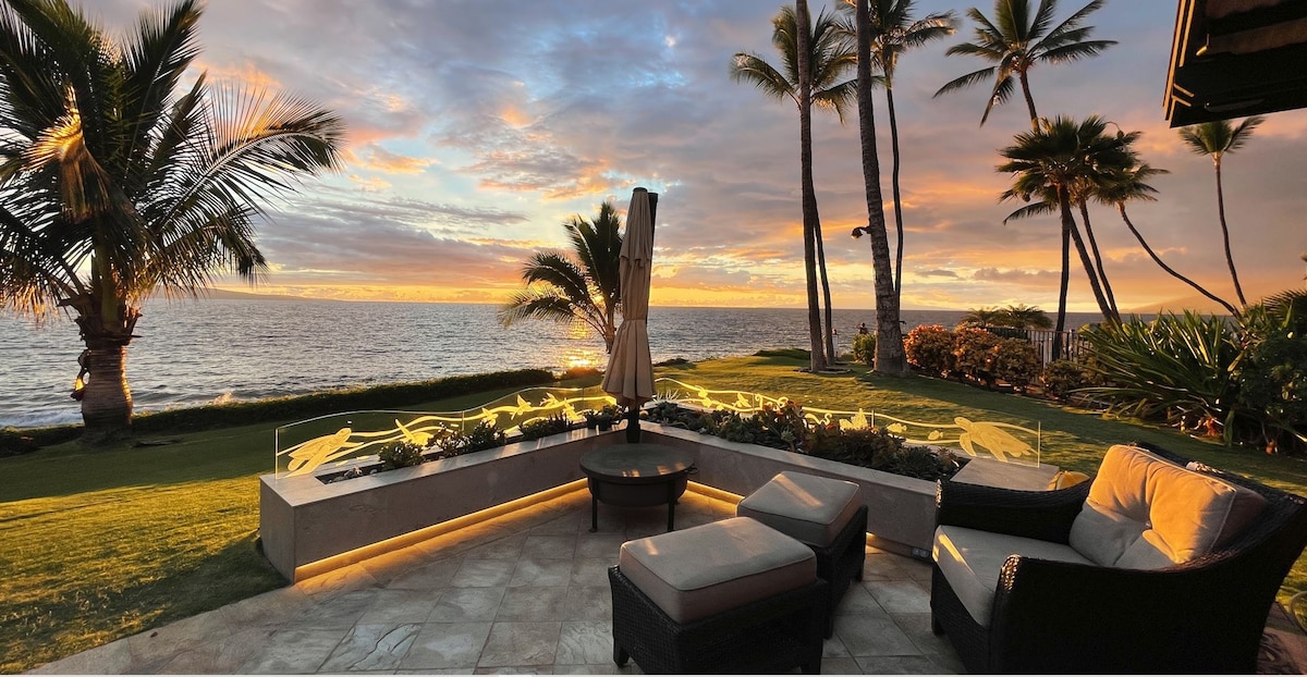 Luxurious oceanfront villa with panoramic Molokai views, private lanai, gourmet kitchen, and spa-inspired master suite-perfect for a relaxing Maui escape with comfort, style, and island charm.
