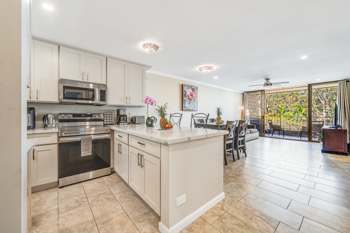 This gorgeous 4 bed 3 bath freshly remodeled condo is located at Koa Resort, featuring South Maui's largest pool. There are 3 king beds, and 2 twin beds with a/c throughout. Enjoy cool evening breezes and dining on the 2 lanais in this beautiful tropical retreat. Please be advised that the State GET of 4.16%, TAT of 10.25%, and Maui County TAT of 3% are assessed. These taxes are collected directly through AirBnB and are included in the total amount seen but itemized separately.