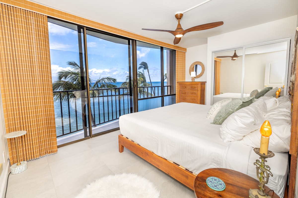 Locally Owned and Operated Studio condo with the best direct beachfront location, panoramic Ocean views, sunsets, and seasonal whale watching. The owner’s spared no expense in renovating this unit making it hand’s down one of the nicest units in all of the Mahana. Wake up to the cool tropical breeze and sounds of the shoreline just 50 feet away. Located on North Kaanapali Beach. Enjoy stunning views and the warm Maui sun inside while central AC keeps you cool and comfortable any time of day.