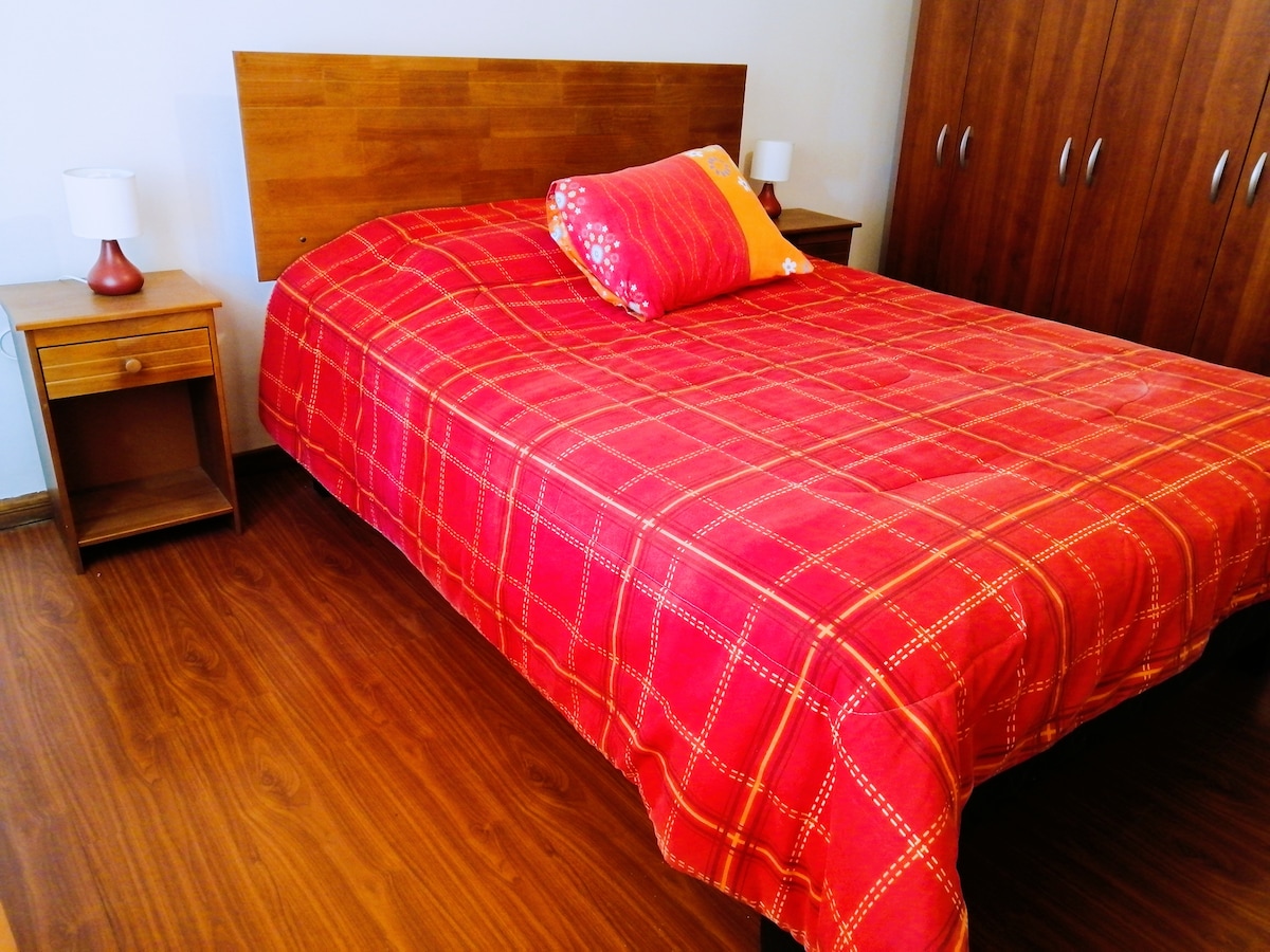 Departamento independiente en segundo piso, con las comodidades basicas, completamente amoblado y equipado. Es un espacio sencillo sin grandes lujos ideal para viajeros que valoren la tranquilidad y seguridad del barrio. Alejado del centro, con buena locomoción, accesos y locales comerciales, lugar muy tranquilo. Estacionamiento para un automóvil estándar. Estufa eléctrica en invierno y ventilador en verano.