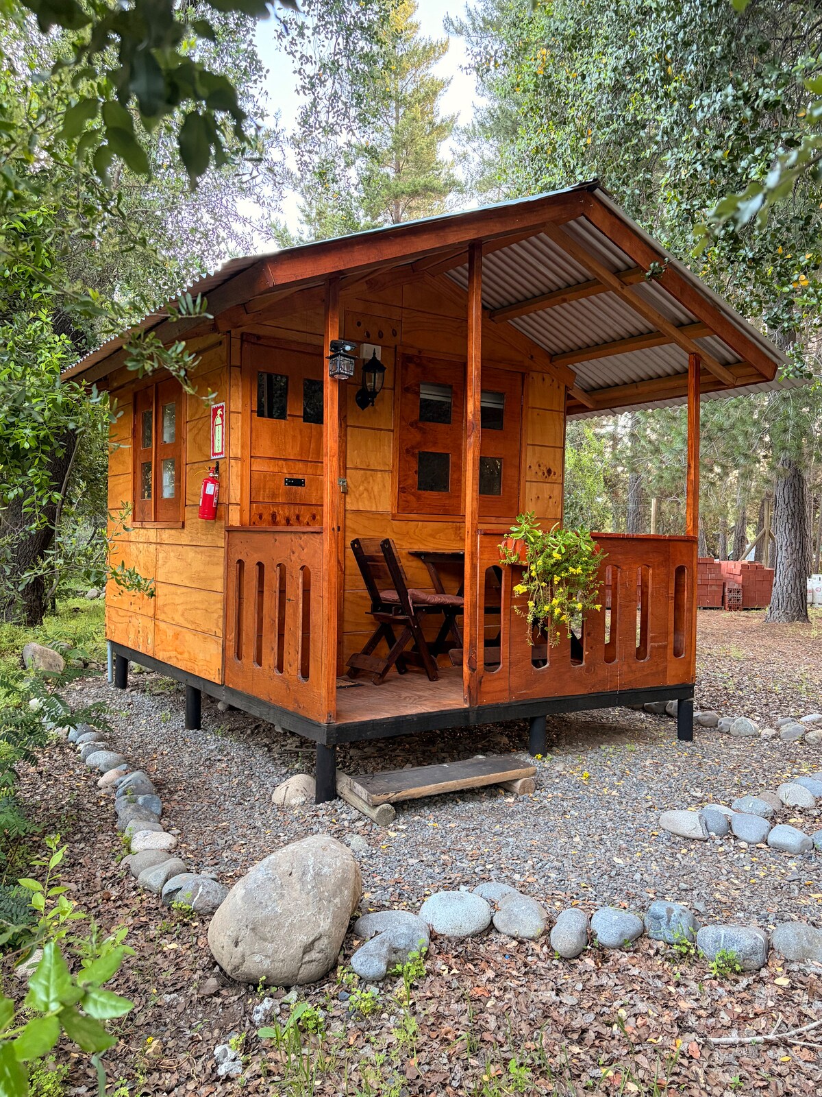 <b>Aviso Importante: las mini habitaciones NO tienen baño interior.</b> Los baños privados + duchas con agua caliente están a solo 30 m en zona exclusiva. Incluye: Excelente ubicación - habitación cerrada con cama matrimonial - velador y enchufes - Baño privado de uso exclusivo - Quincho, zona fumadores - Acceso directo al Río Claro - Wifi Starlink - Estacionamiento y cámaras de seguridad Glamping tranquilo en plena naturaleza.
