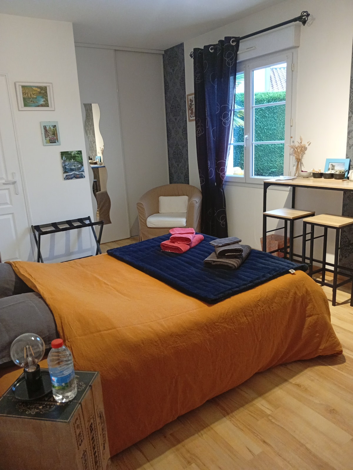 Vous disposez d' un espace entièrement privatif avec entrée indépendante, salle d'eau, cuisine équipée et bureau à l'étage. Nous mettons à votre disposition tout le nécessaire pour un petit-déjeuner. A 5mn à pied de la gare Puy du Fou à 25 mn en voiture. Parc Oriental de Maulévrier à 15 mn de trajet. Hellfest à 30 mn. J'aurai le plaisir de vous accueillir mais une boîte à clé reste disponible pour les arrivées tardives.