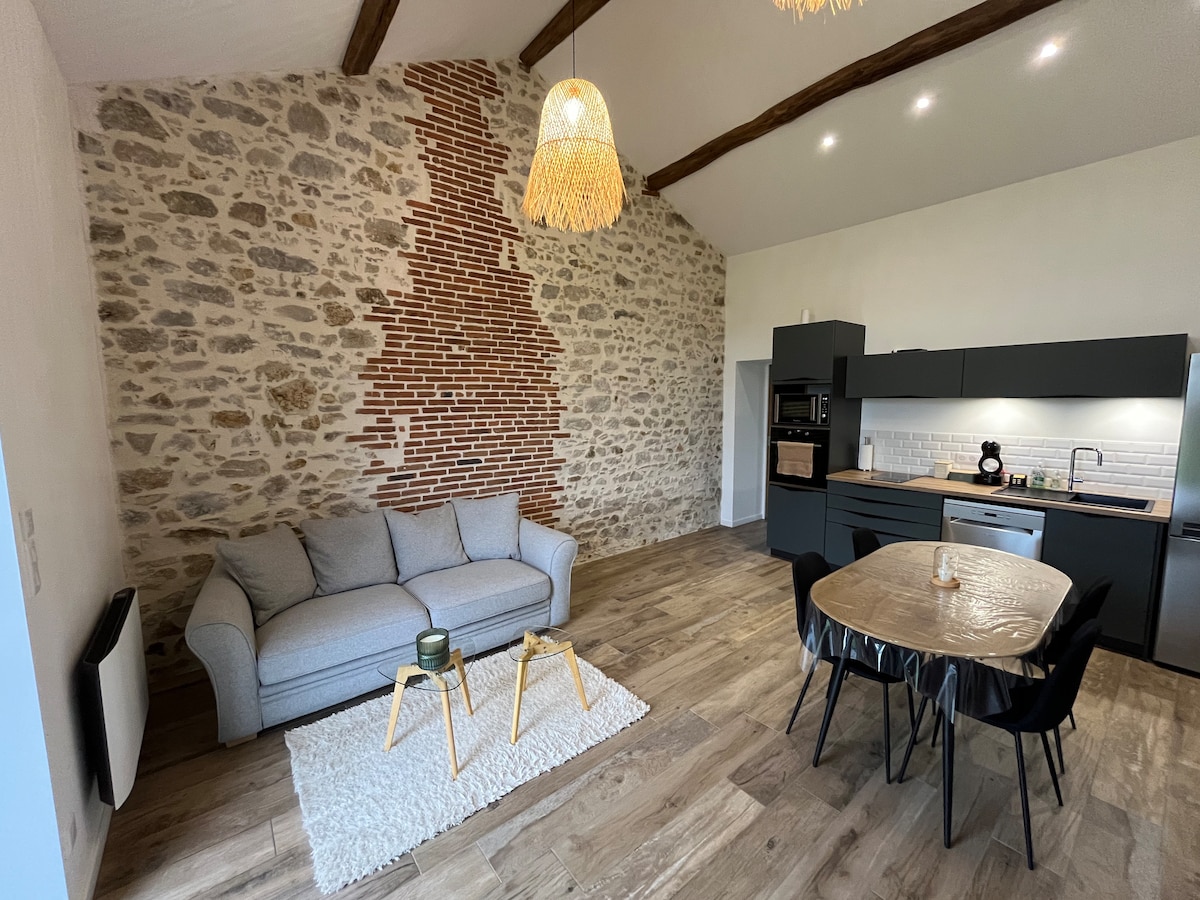 C'est avec grand plaisir que nous vous présentons notre petite préférée. (8pers) Situé à 20 min du Puy du Fou, à 15min de Poupet et à 15 min de la A87, il comprend un grand séjour avec une cuisine équipée neuve, un salon avec cheminée, TV et wifi et un canapé convertible pour deux personnes + un coin spa privé. Il dispose aussi d'une terrasse avec jardin clos de 300m². Le ménage est inclus dans le tarif. Etage : 2 chambres de 20m² avec salle de bain privée. Ouverture : 27/04/2019