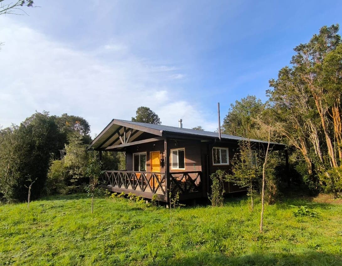 Cabaña NUEVA y completamente equipada. Crea recuerdos inolvidables en este alojamiento único y familiar. Te permitirá un contacto directo con la flora y fauna nativa, podrás sentir la energía vital del BOSQUE rodeada de canelos, arrayanes, ulmos, etc. Disfrutar del canto del Chucao y vuelo de pájaros nativos. Podrás participar de actividades propias del campo y caminatas guiadas, por el bosque y alrededores.