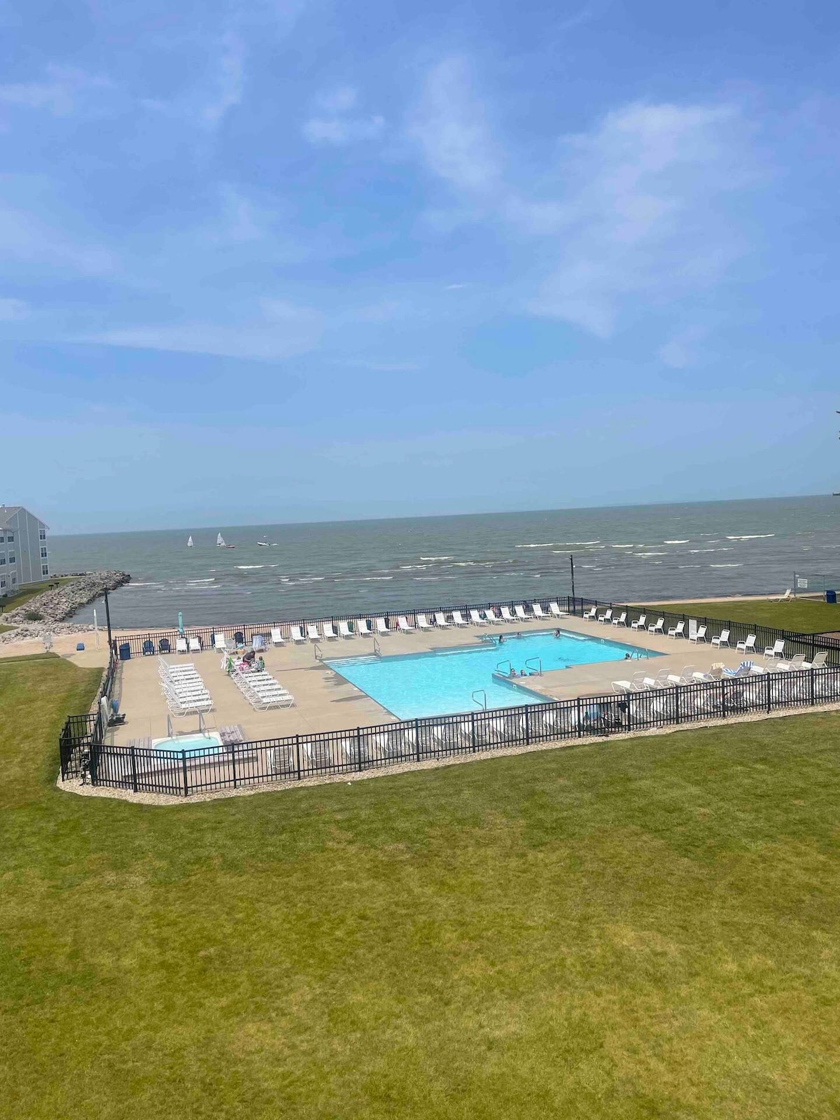 Book your getaway to The Blue Palm today! Recently updated, pristine 3rd floor waterfront condo, offering you unparalleled views of Lake Erie & The Islands. You will feel as though you're sitting on top of the lake, with soothing sounds of the waves crashing on the shore just beyond the sun room windows. *Walk 5 min to Jet Express & 10 to Downtown *Unwind in the lakefront heated pool and hot tub *Indulge in quiet walks along the private beach *1 ft-entry pool & expansive playground for the kids