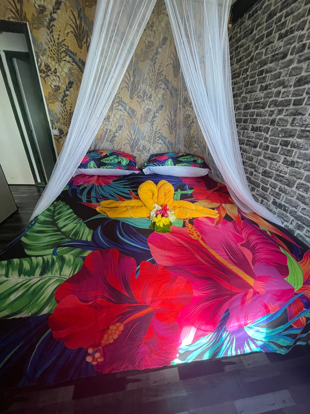 Notre humble demeure située à Tahaa, en face de la passe PAIPAI, à la pointe Tiamahana, peut accueillir 6 personnes. La propriété du chanteur Joe Dassin se situe à 500m ! Pour l’emblématique course de pirogue qui se déroulera au début du mois de novembre, vous y serez aux loges ! Notre terrasse présente une vue imprenable sur les couchers de soleil, puisque nous sommes en bord de mer ! Māuruuru 🌺