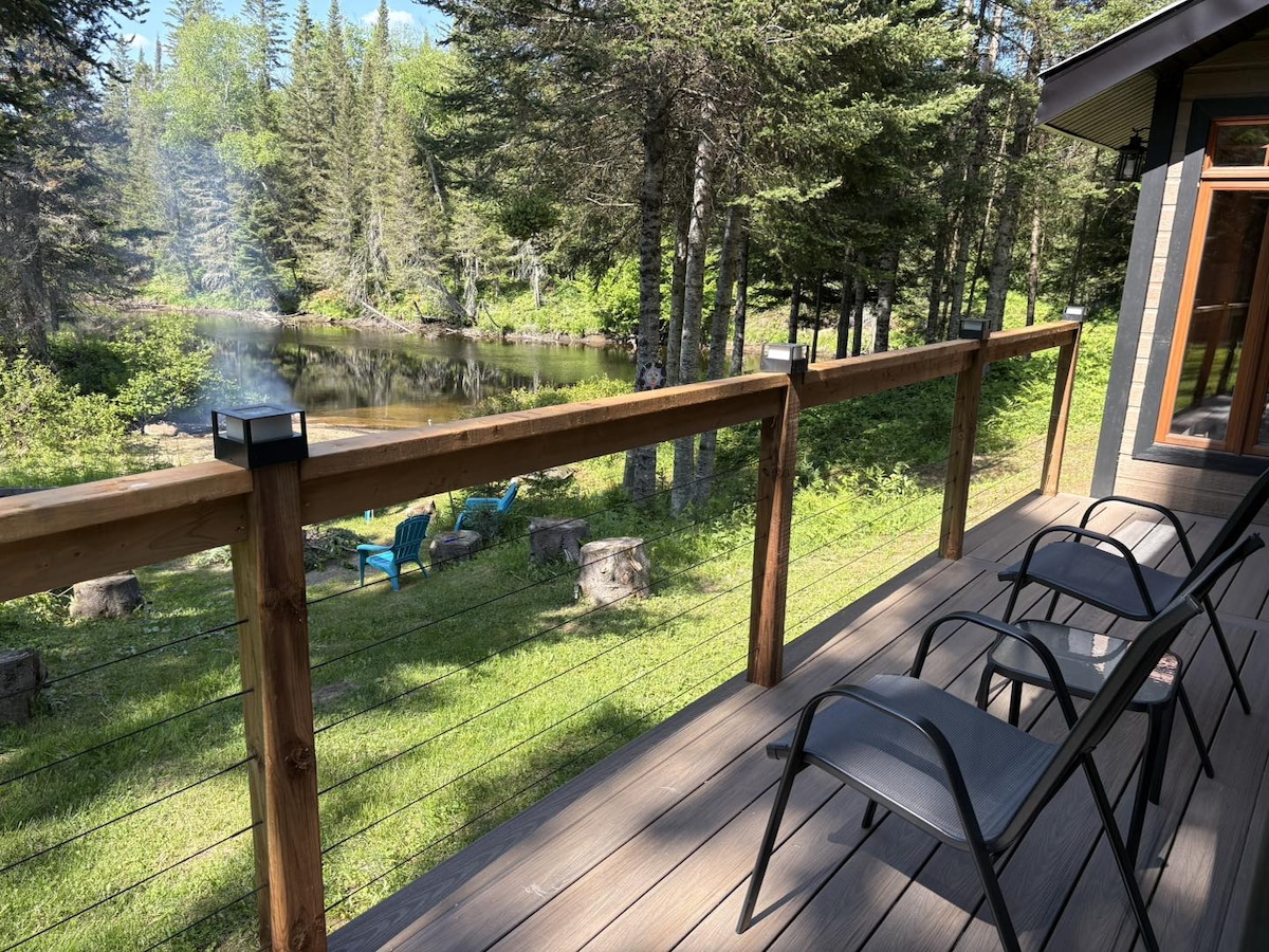 Owl’s Nest welcomes you to serenity and a total reconnection to nature CITQ 296955 Tucked among towering white pines, Owl’s Nest is your riverside hideaway. Step out to the Ouareau River, soak in the hot tub, or simply listen to the water as you drift to sleep. ✔ Direct access to the Ouareau River ✔ Hot tub under the stars ✔ Master balcony with forest + sunset views ✔ Cold-plunge friendly swimming ✔ Surrounded by nature and medicinal plants