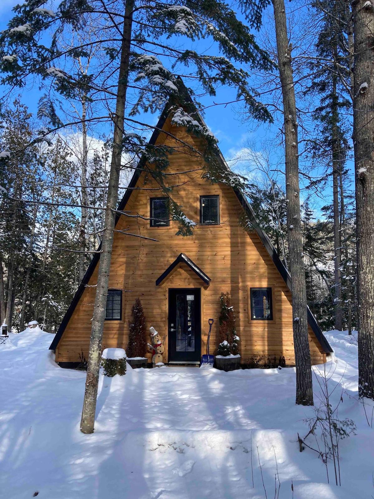 Perfect little cozy cabin, ideal for a couple or small family! This rustic lakeside chalet offers amazing views year round with its large windows facing the lake. Whether you want to relax indoors and keep warm by the electric fireplace, sit in the enclosed veranda looking out onto the lake while reading a book, or even work remotely at the table facing the panoramic view, this private little property has everything you need.