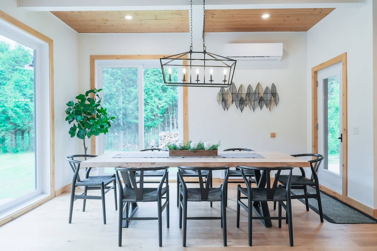 An exclusive and stunning chalet, sitting on over a million square feet of land. We offer you complete privacy, where you can take the time to recharge and reconnect with nature. Let our walking trails along the river charm you with unique accesses to the river. If you have a pet, let them roam freely without worry and use beds, covers and bags so they can relax as well. CITQ#311149